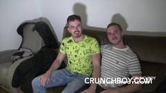 Dois caras gostosos são apresentados para curtirem um momento de sacanagem. Eles começam chupando o pau um do outro e depois desfrutam de sexo anal no sofá
