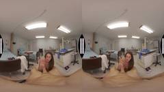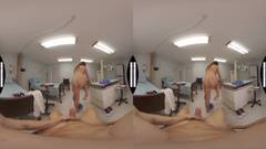 Nolina Nix interpreta uma enfermeira sexy e bem torneada que se despe e monta no pênis de um paciente em seu escritório, na frente de uma câmera VR.