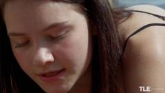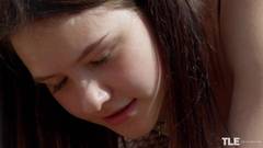 Uma jovem vadia de lingerie preta está com muito tesão e masturba sua buceta molhada com prazer com um vibrador em um local abandonado ao ar livre!