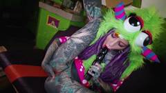 A bela tatuada da Anuskatzz em Cosplay se masturbando brutalmente
