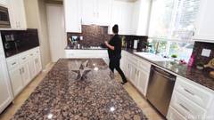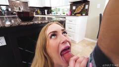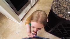 Emma fez um boquete enquanto seu amante estava no mesmo cômodo, depois foi pega na sala de estar, revelando uma pequena bunda branca.