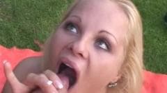 Esta linda loira sabe muito bem como agradar seu vizinho no jardim. Não importa a idade, o que importa é poder se divertir!