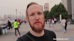 Ele colocou uma câmera GoPro no braço para nos mostrar de perto como ele masturba a buceta de uma garota chinesa na cama até ela esguichar!