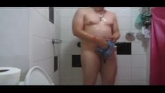 Esse gordinho fofo esta a tomar banho e fica empolgado assim que vai bater uma punheta para libertar a sua carga de porra do dia