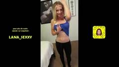 Lana é uma loira safada e muito gostosa. Ela se despe sensualmente e se ajoelha para dar uma chupada de profissional antes da cavalgada!