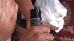 Tony coloca um pouco de lubrificante em seu pênis e a masturba gentilmente, acariciando suas coxas e ânus e ejaculando em seu estômago.