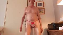 Esse velho é muito safado. Ele liga sua câmera para se exibir usando apenas uma tanguinha e com a rola de fora.
