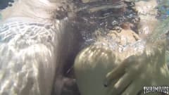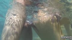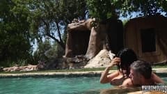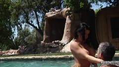 Aqui estamos com Romi Rain que está tomando um mergulho de cacete em sua buceta na piscina com seu homem...