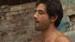 Ivan chupa o pau de Otelo e ejacula no rosto antes de foder o traseiro no capô de um carro abandonado.