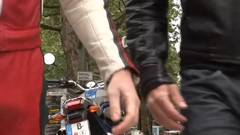 Um motociclista excitado esmaga o pequeno rabo do DILF