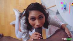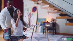 Essa gostosa safada abre as pernas como louca e é com sua saia de estudante safada que ela vai excitar esse negro como nunca antes