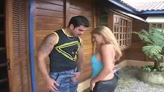 Eles se encontram do lado de fora e imediatamente sabem que vai ser sexo hardcore. Uma loira e um hispânico com um pau grande transam.