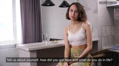 A jovem russa Guzy Cabrera fala um pouco sobre si mesma antes de se despir. Ela vai se deitar e se masturbar, visando um bom orgasmo.