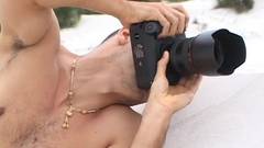 Handsome Brandon Manilow faz uma sessão de fotos nus na areia com seus dois amigos gays. Depois disso, os três fodem em casa.
