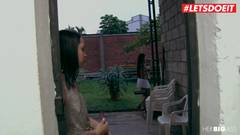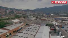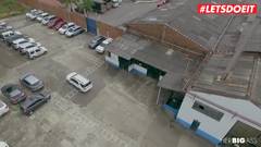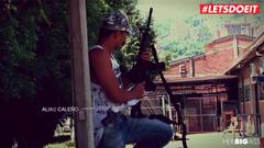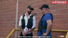 Mulher latina transa com um belo policial