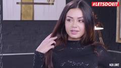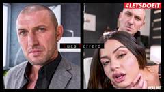 Martina Smeraldi, morena atraente, faz sexo brutal com o amante careca Luca Ferrero, fode profundamente na cona e na boca até engolir porra.