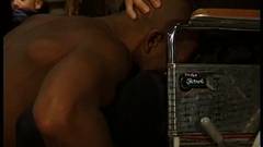 Um belo deus ébano é levado numa masmorra por outros homens perigosos que se revezam para foder ele enquanto ele está amarrado.
