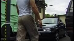 Andy e seu namorado negro param o carro para um boquete e uma lambida na bunda antes de voltar para casa e fazer sexo anal.
