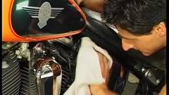 No trabalho, eles tiram o macacão e fazem sexo numa motocicleta