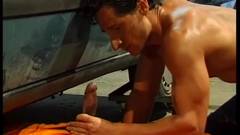 Cyrus decide se entregar ao pênis enorme do mecânico negro e sexy. Uma incrível foda gay inter-racial na garagem!