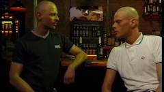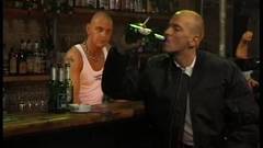 Alguns caras durões têm um confronto em um bar gay. O perdedor é fodido na mesa e todos gozam em cima dele.