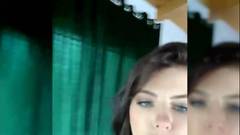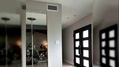 Adriana faz um pequeno show solo para nós, vestida de renda, ela vai fazer um show em um pole dance e abre bem a bunda.
