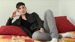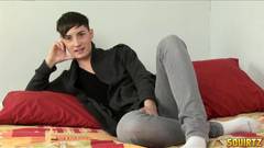 Yves está sozinho e se masturbando enquanto quer chegar ao clímax e gozar em cima de si mesmo para você ver.