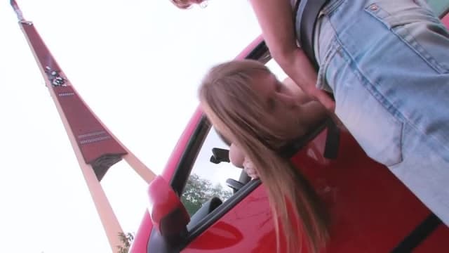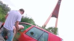 É com o namorado e ao ar livre que a puta do dia vai começar tomando diretamente em um carro e sem qualquer vergonha...