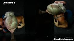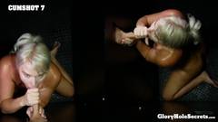 Uma milf loira devoradora de porra bombeia nove caudas no GloryHole