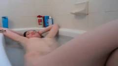 A jovem morena com seios pequenos toma banho. A exibicionista gosta de gravar esse momento para a câmera e mostrá-lo aos admiradores secretos.