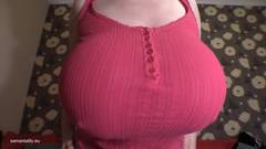 Samantha os tira e seu homem começa a apertá-los: seus enormes seios naturais são macios e saborosos!