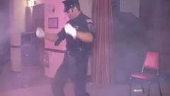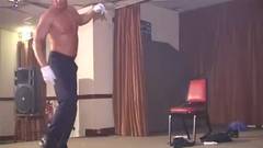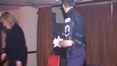 Nesse club de stripper as coroas vão à procura de homens atrevidos e divertidos como esse moreno que dança para elas com os eu galo saltitão.