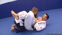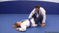 Este professor de karatê vai passar algum tempo de qualidade com sua aluna, devo dizer que essa vagabunda adora pau!