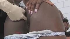Policial lésbica gosta de dar uma olhada profunda na buceta de uma jovem prisioneira negra.