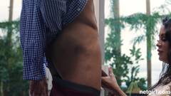 Ela tem um corpo lindo e um comportamento de vadia, ajoelha-se para chupar aquele pau doce e depois vai direto para a cama para foder!