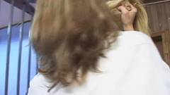Essa linda loira é completamente revistada em todos os seus buracos por esta mulher que quer ter certeza de que nada está escapando dela.