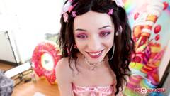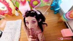 A pequena Cecília adora bombear um pau suculento. Ela se delicia com o suco de sua fruta. Com sua aparência safada, ela é muito bonita.