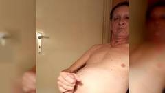 Esse velho sujo se masturba ao lado do teclado do seu computador. Ele vai gravar o momento com a câmera do seu celular.
