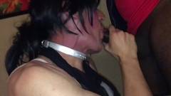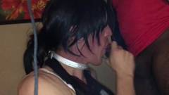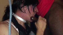 Esse travesti francês é um fetiche que gosta de ser fodido. Esse encontrou um cara negro para fazer isso e outro para chupar a sua pica