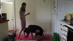 O cara é um inútil que prefere que sua namorada lhe dê um chute nos tomates do que ajudar ela. Ele nem sequer a fode apropriadamente!