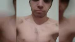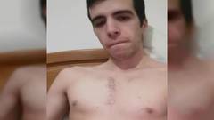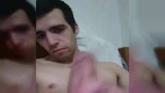 Um jovem moreno gozando na sua própria boca