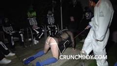 Essa cena de foda fetichista é imperdível, pois todas elas dão o cu enquanto vestem suas fantasias de Halloween.