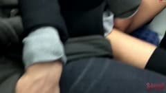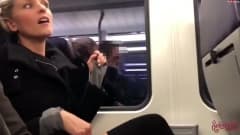 Essa exibicionista loira gosta de se masturbar e foder em todos os lugares. Aqui a vemos fodendo com um passageiro no trem.