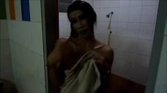 A morena trans brasileira gostosa Teay tem peitos pequenos, está sempre excitada e então bate no seu pau enquanto está deitada na cama.