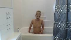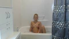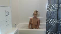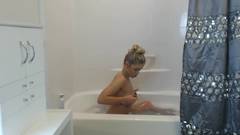 Kali Roses é uma loira linda que fica brincalhona na banheira. Veja como ela se acaricia sensualmente e derrama sabão em suas tetas.