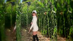 A bela Riley faz uma sessão fotográfica numa plantação e levanta seu vestido para que possamos apreciar sua lingerie sexy e seu rabo perfeito.