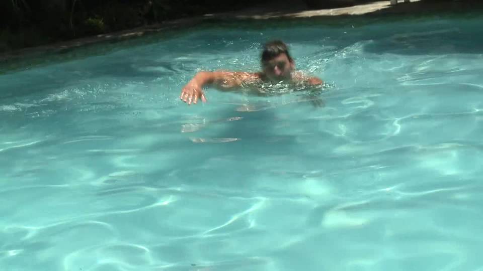 O sexy Ashton Dale nada nu na piscina e sob o sol ele acaricia seu traseiro e se masturba até que ele gozar.