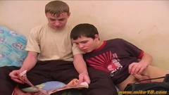 Esses dois caras novinhos vão se beijar e chupar um ao outro para no fim bater uma punheta até cuspir toda a sua porra.