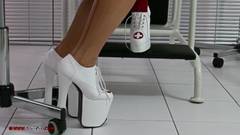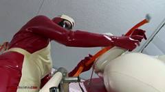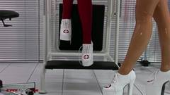 Seraphina e Julia estão aqui em fatos de couro se preparando para uma cena de bondage muito intensa. Essa enfermeira não terá piedade