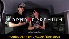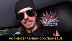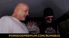 A sexy estrela porno morena fode um velho amador sortudo depois de um broche molhado e excitante dentro de uma van.
